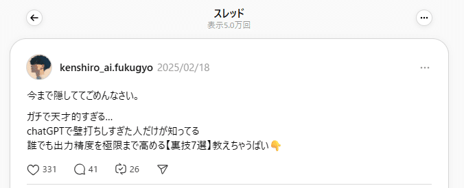 バズ投稿と同じで、最初はシンプルに興味だけ引く