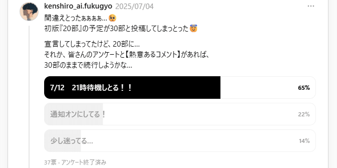アンケートの投稿直後に商品やnoteを貼ってしまうと…