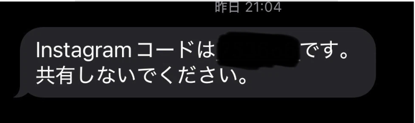 その後、打ち込んだ電話番号へSMSを通して、さらに認証コードがくるため、認証コードをコピーし、インスタのアカウントへ貼り付けてください。